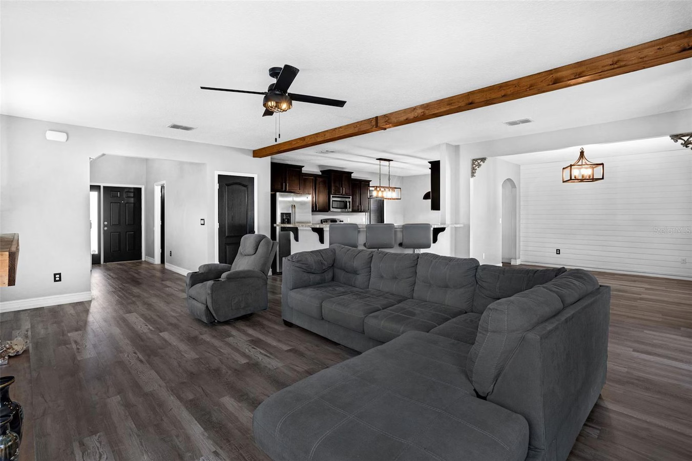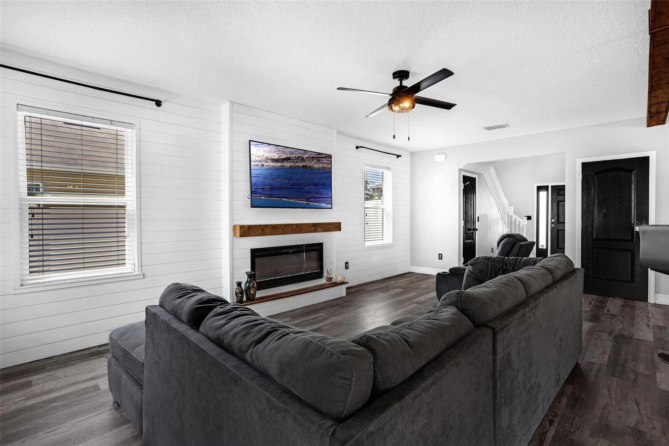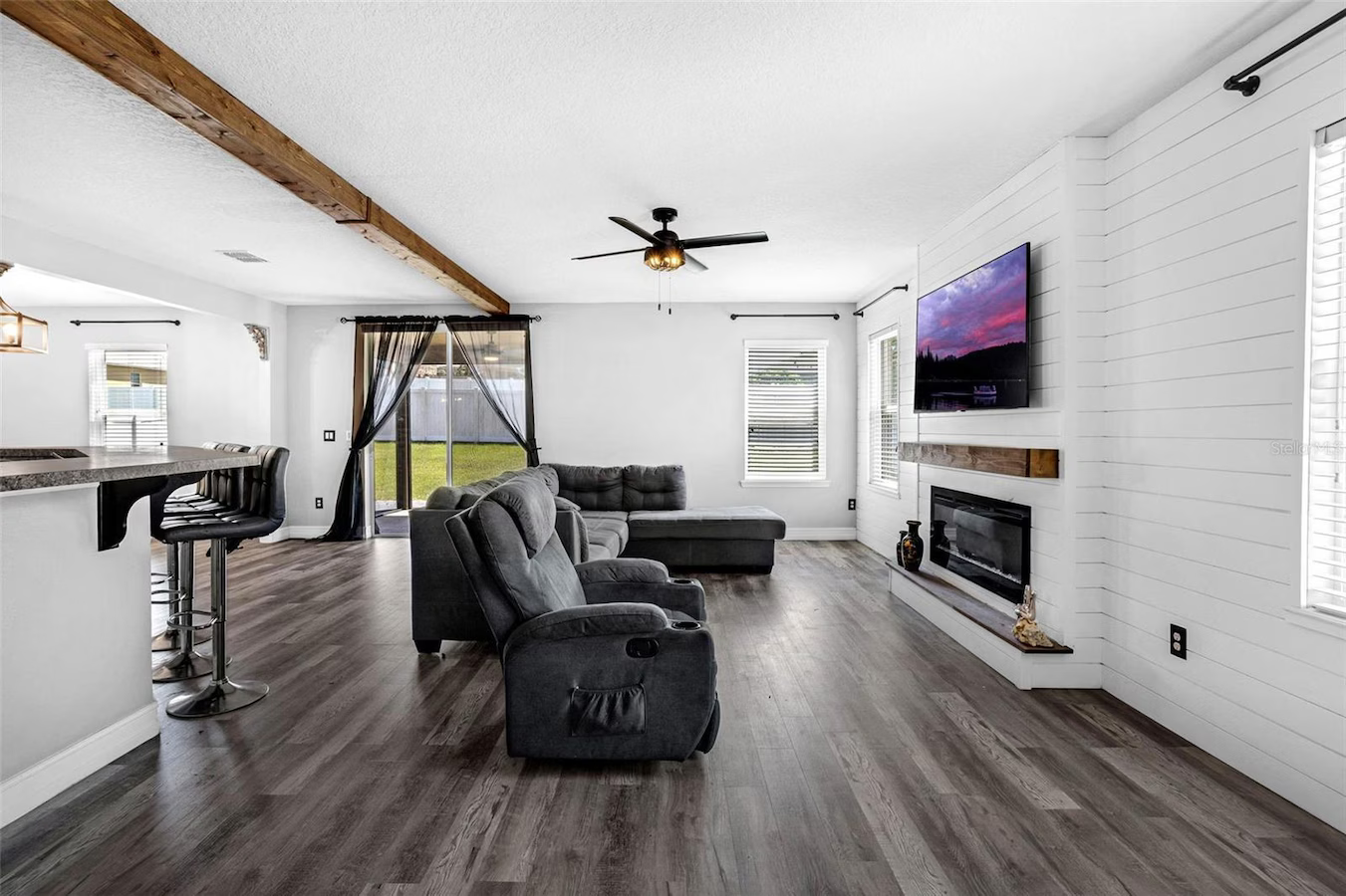 726 Black Eagle Dr, Groveland, FL 34736_____ _____4beds, 3baths, 2,201 sqft 2 car attached garage spaces__________ $33 monthly HOA fee _____ Built 2014 2 story UPDATED FLOORING and NO CARPET, featuring LVP throughout for a modern, low-maintenance lifestyle. __________The main living area is highlighted by a modern electric fireplace, updated lighting, and seamless