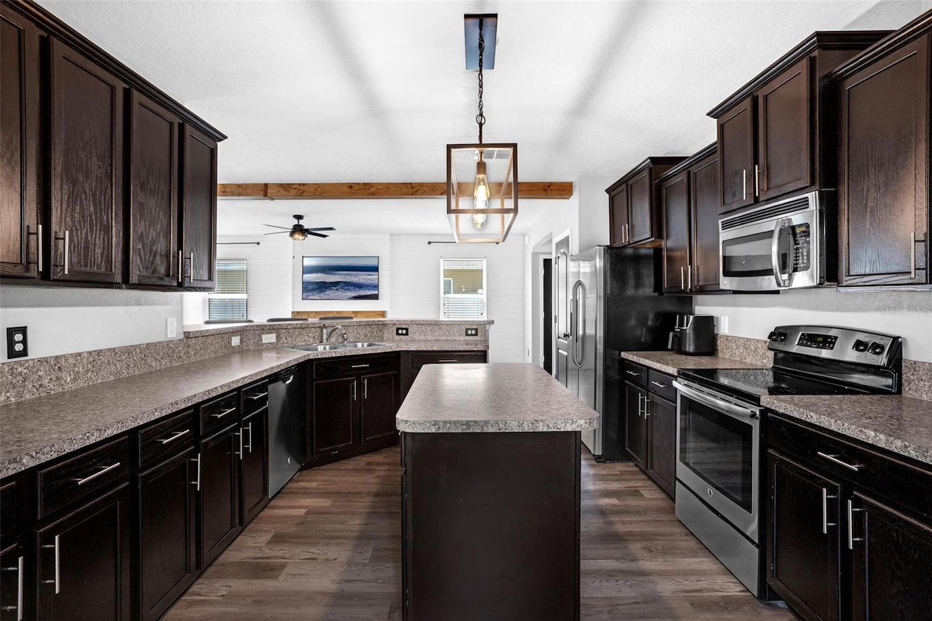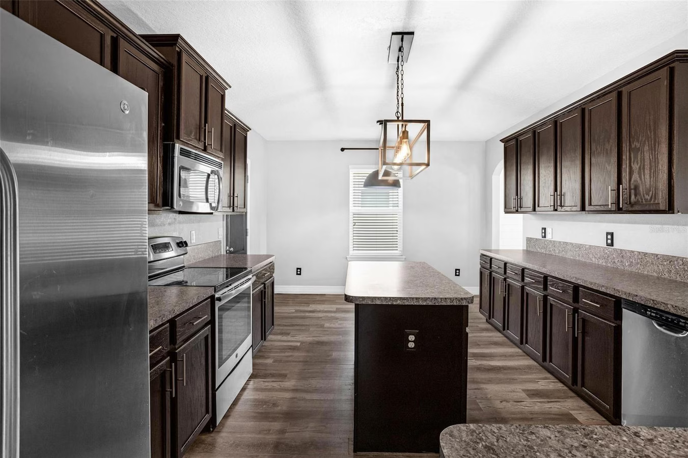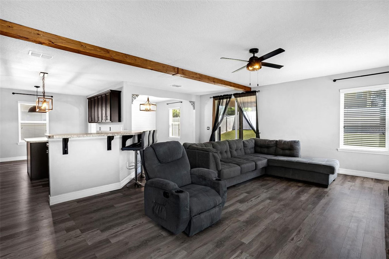 726 Black Eagle Dr, Groveland, FL 34736_____ _____4beds, 3baths, 2,201 sqft 2 car attached garage spaces__________ $33 monthly HOA fee _____ Built 2014 2 story UPDATED FLOORING and NO CARPET, featuring LVP throughout for a modern, low-maintenance lifestyle. __________The main living area is highlighted by a modern electric fireplace, updated lighting, and seamless